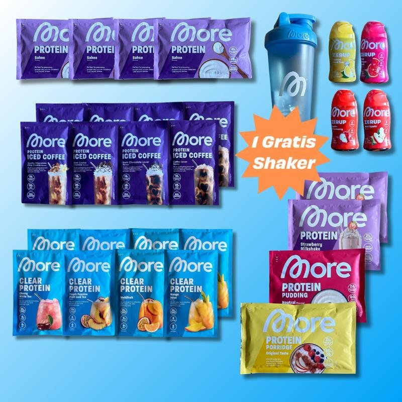 XXL Protein Box – MORE Nutrition – (Zerup, Clear Whey, Protein Iced Coffee, Protein Milkshake, Protein Sahne, Protein Grie?pudding, Protein Pudding, Shaker)